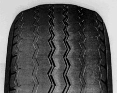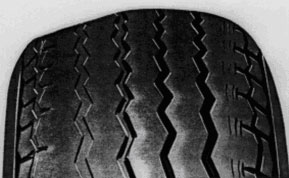 | Desgaste excessivo no centro da banda de rodagem, porque o pneu rodou com pressão demasiada. |