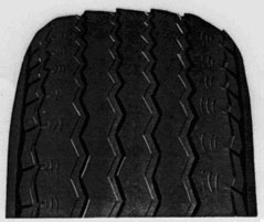 Desgaste excessivo na banda de rodagem. A causa do problema foi falta de alinhamento e o ângulo do câmber incorreto. |